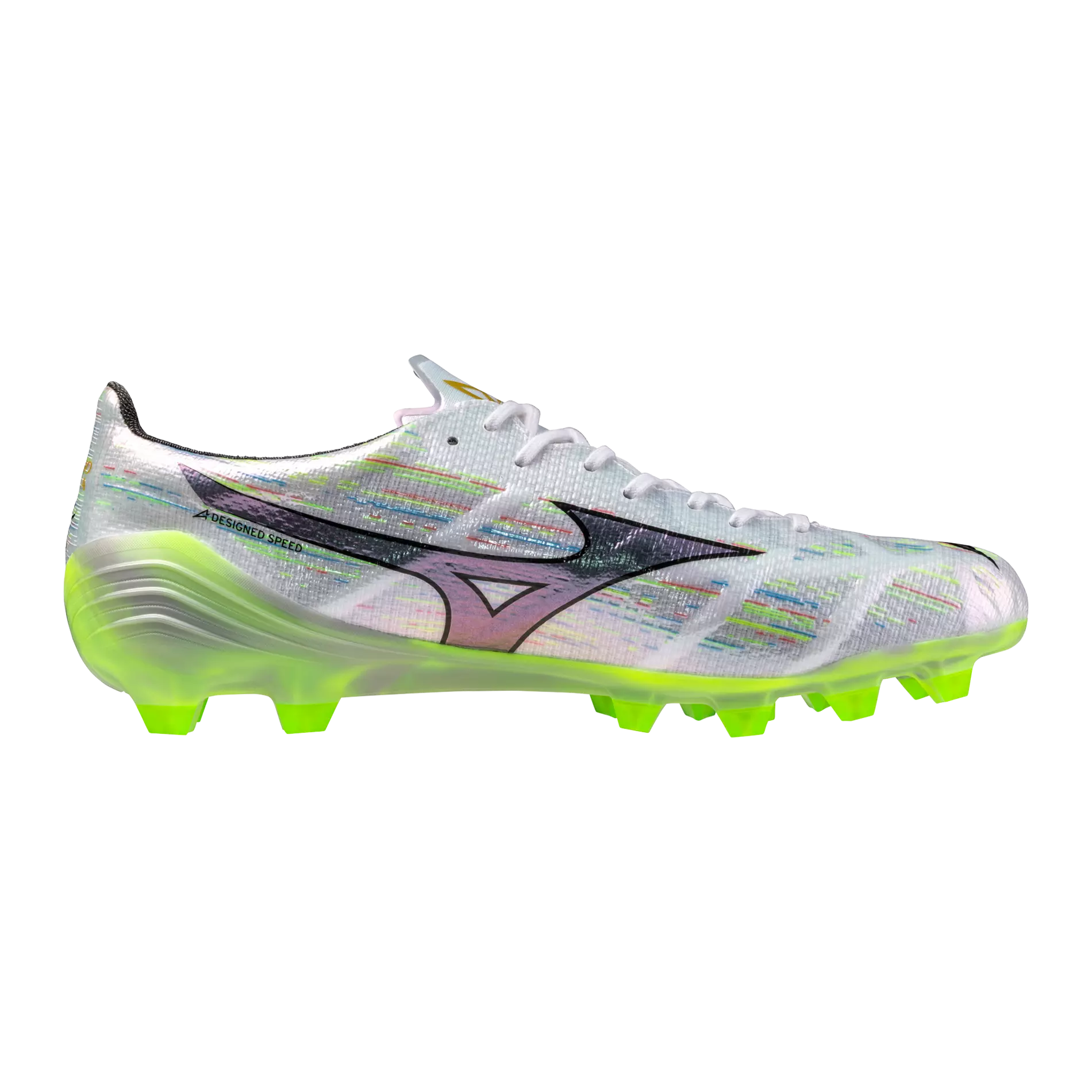 Reach an elite level with Mizuno football boots meticulously engineered for forward velocity. Redesigned with the Engineered Fit Last Neo for a fit only Mizuno could deliver, the upper has been enhanced down to the smallest detail to ensure unparalleled comfort. The outsole was made to increase forward-direction speed, and combines with MIZUNO ENERZY at the heel for amazing cushioning and energy return. The ZEROGLIDE α MESH grip insole reduces lateral shifts and supports precise movements.